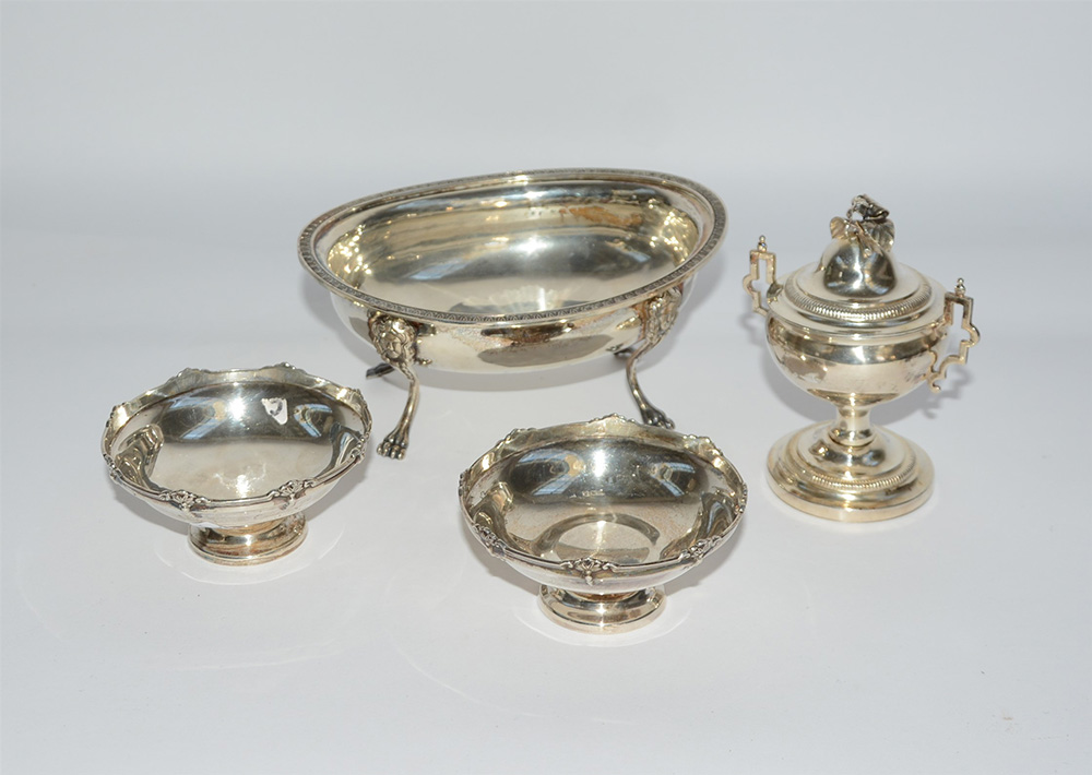 Lotto in argento composto da due alzatine e due zuccheriere (gr 420 ca.) (lievi difetti)