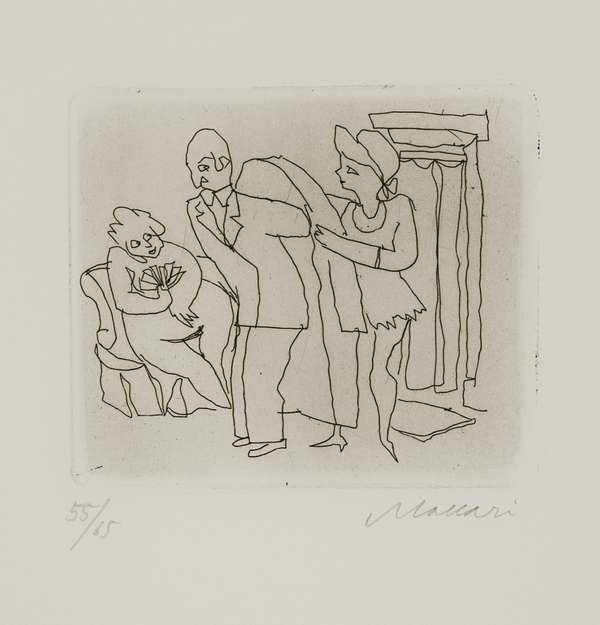 Mino Maccari Senza titolo cartella di 7 acqueforti, es. 55/65 cm. 35x25 Firmate in basso a dx dell'inciso Le incisioni della cartella sono eseguite e stampate da Mino Maccari,edite da Imex Lane,testo di Carlo Ragghianti