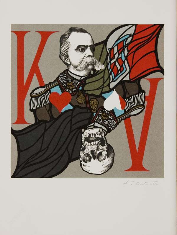 Flavio Costantini Il Re fotolitografia a 9 colori,es. 1495/5000 cm. 28x21 Firma in basso a dx Dichiarazione di autenticità con timbro a secco della BolaffiArte in basso a sx