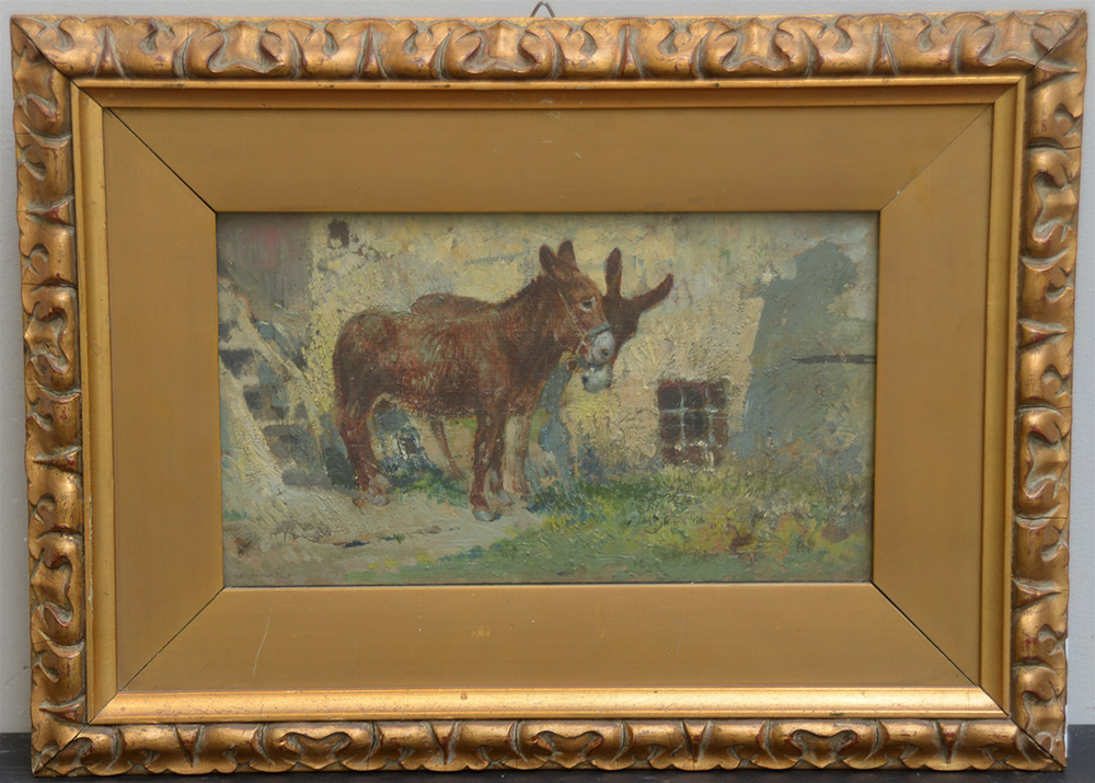 Tito Pellicciotti (Barisciano 1872 - L'Aquila 1943) (Attr) “Asinelli” olio su tavola (cm 16x28) in cornice