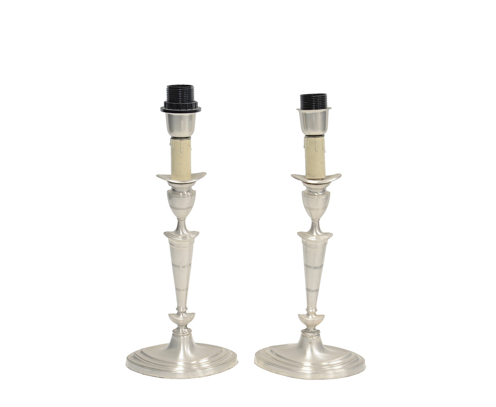 Coppia di lampade da tavolo ad una luce con fusto in metallo argentato (h cm 38)(lievi difetti)