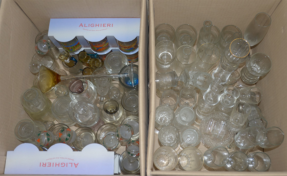 Lotto di due cartoni contenenti numerosi bicchieri (difetti)