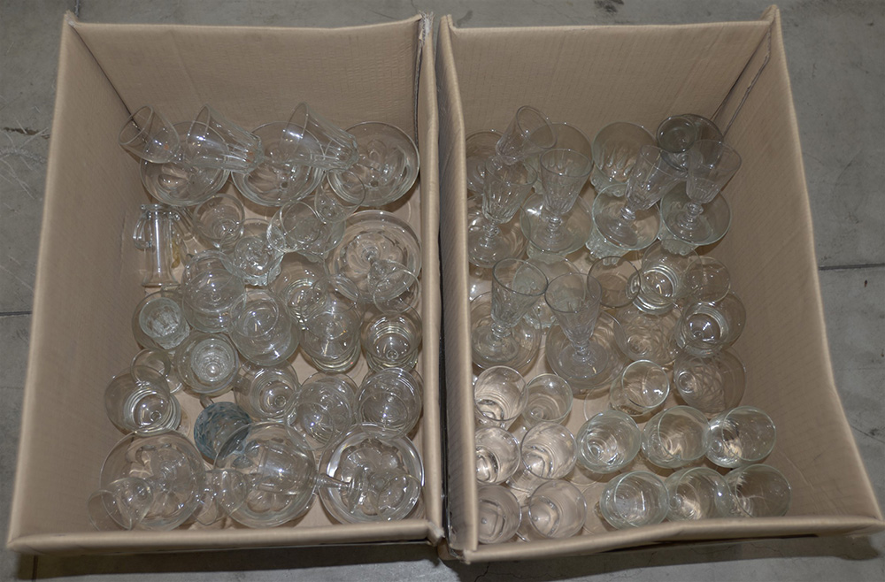 Lotto di due cartoni contenenti numerosi bicchieri in cristallo (difetti)