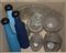 Cartone contenente numerosi oggetti in cristallo e tre bottiglie in vetro...