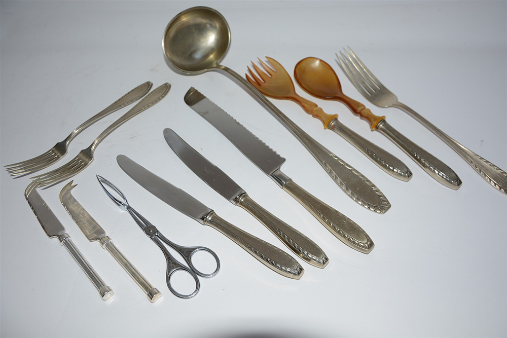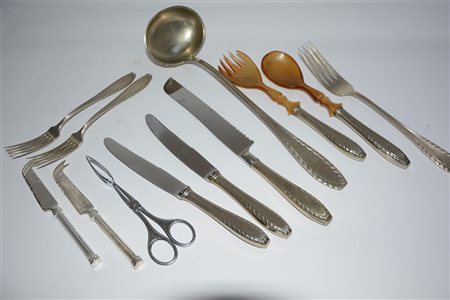Scatola contenente numerose posate in metallo argentato (difetti)