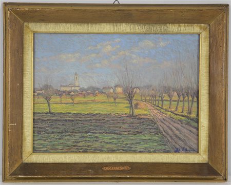 Aldo Dell'Acqua "Cuggiono" 1944, olio su cartone pressato (cm 31x41) firmato...