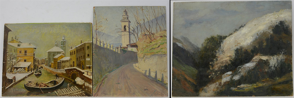 Lotto composto da tre dipinti di autori diversi (difetti)
