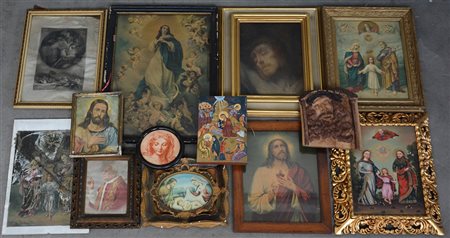 Lotto di due cartoni contenenti numerosi quadri di soggetto religioso;...