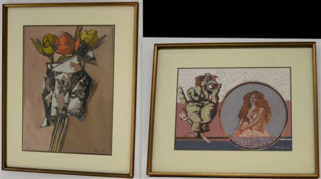 Giardello "Composizioni" due tecniche miste in cornici (difetti)