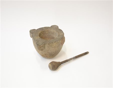 Mortaio in pietra con pestello in metallo (d cm 20) (difetti e mancanze)
