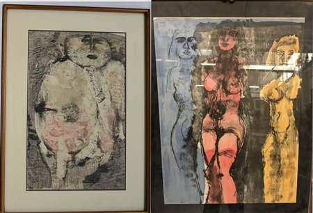 Lotto composto da un dipinto e una stampa di autori diversi. In cornici
