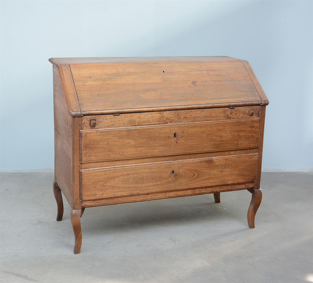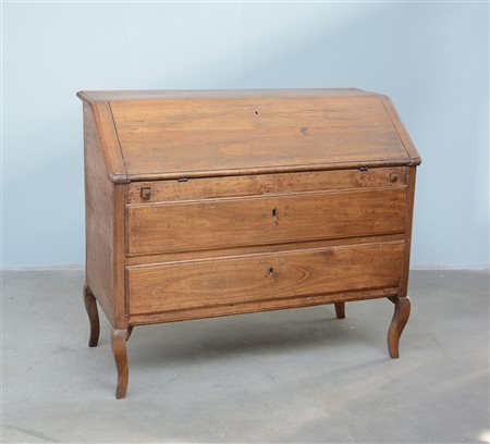 Ribalta rustica a due cassetti con gambe mosse e calatoia celante due ampi...