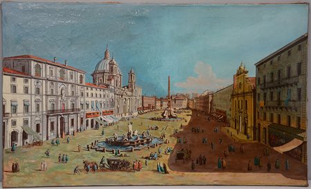 Ignoto "Piazza Navona a Roma" olio su tela (cm 60x100)(difetti)
