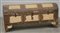 Baule da corredo a dorso d'asino rivestito in tessuto, con fregi decorativi...