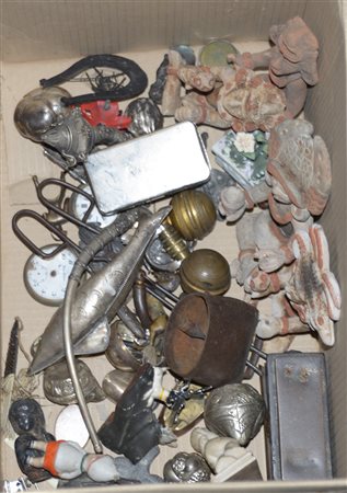Scatola contenente numerosi oggetti di fatture e materiali differenti (difetti)
