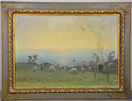 Firma indecifrata, “Paesaggio agreste sul mare”, olio su tela (cm 70x100), in...