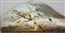 Sovraporta di forma sagomata dipinto ad olio su tela con uccelli su ramo fiorito (cm 60x120)(difetti)