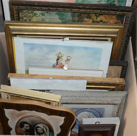 Cartone contenente numerosi quadri di soggetto religioso (difetti)