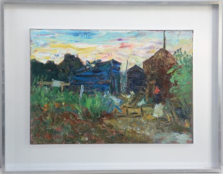SAuro Cavallini (1925 - 2016) "Cascine" olio su compensato(cm 35x50) firmato in basso a sinistra, in cornice