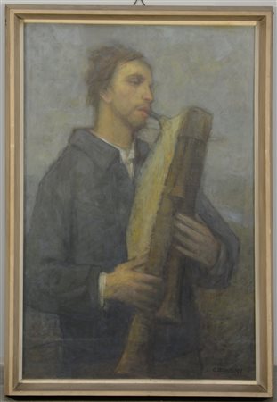 Bonomi C. “Il suonatore di zampogna”, olio su masonite (cm 93x60) firmato in...
