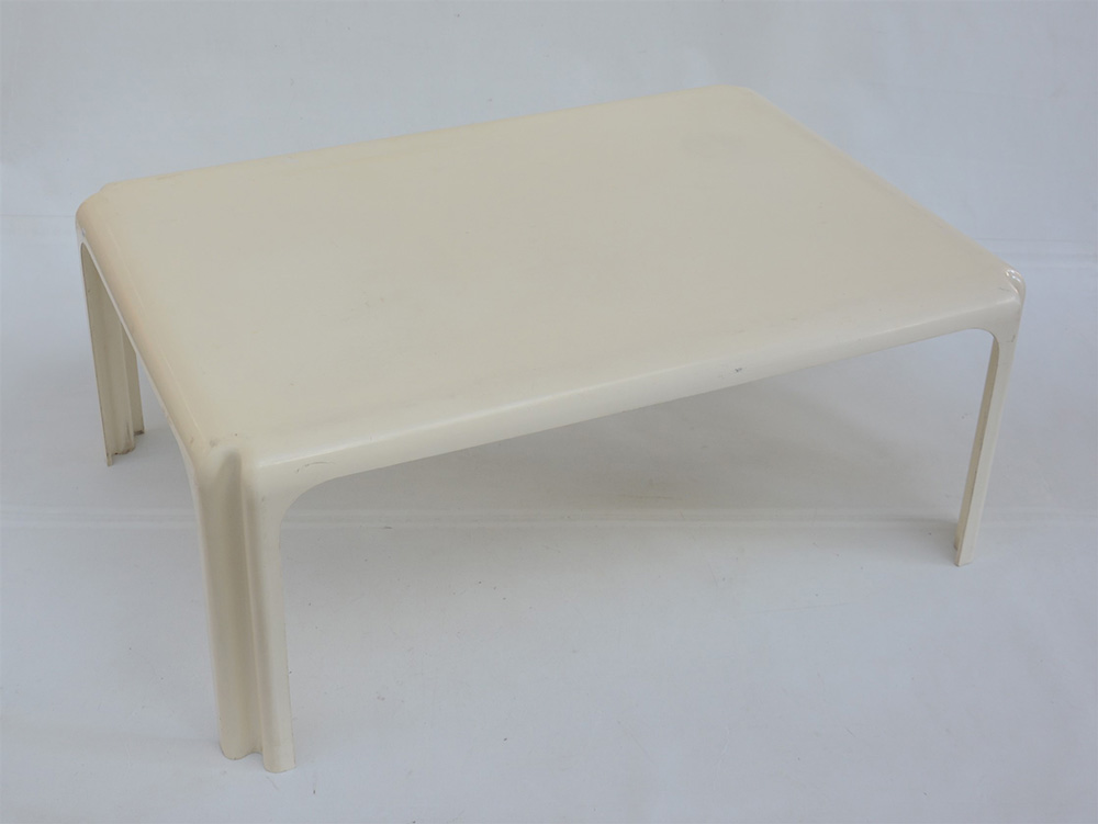 Tavolino da salotto rettangolare in plastica bianca iscritto sotto la base Artemide Milano- Vico Magistretti (cm 100x40x70)