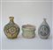 Lotto composto da due fiasche ed una ciotola in maiolica policroma con decori...