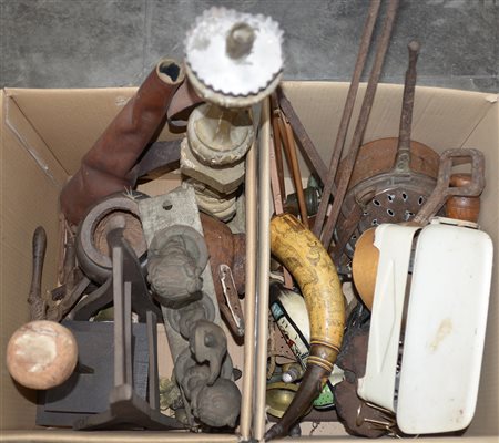 Lotto di due cartoni contenenti numerosi oggetti per usi differenti (difetti)
