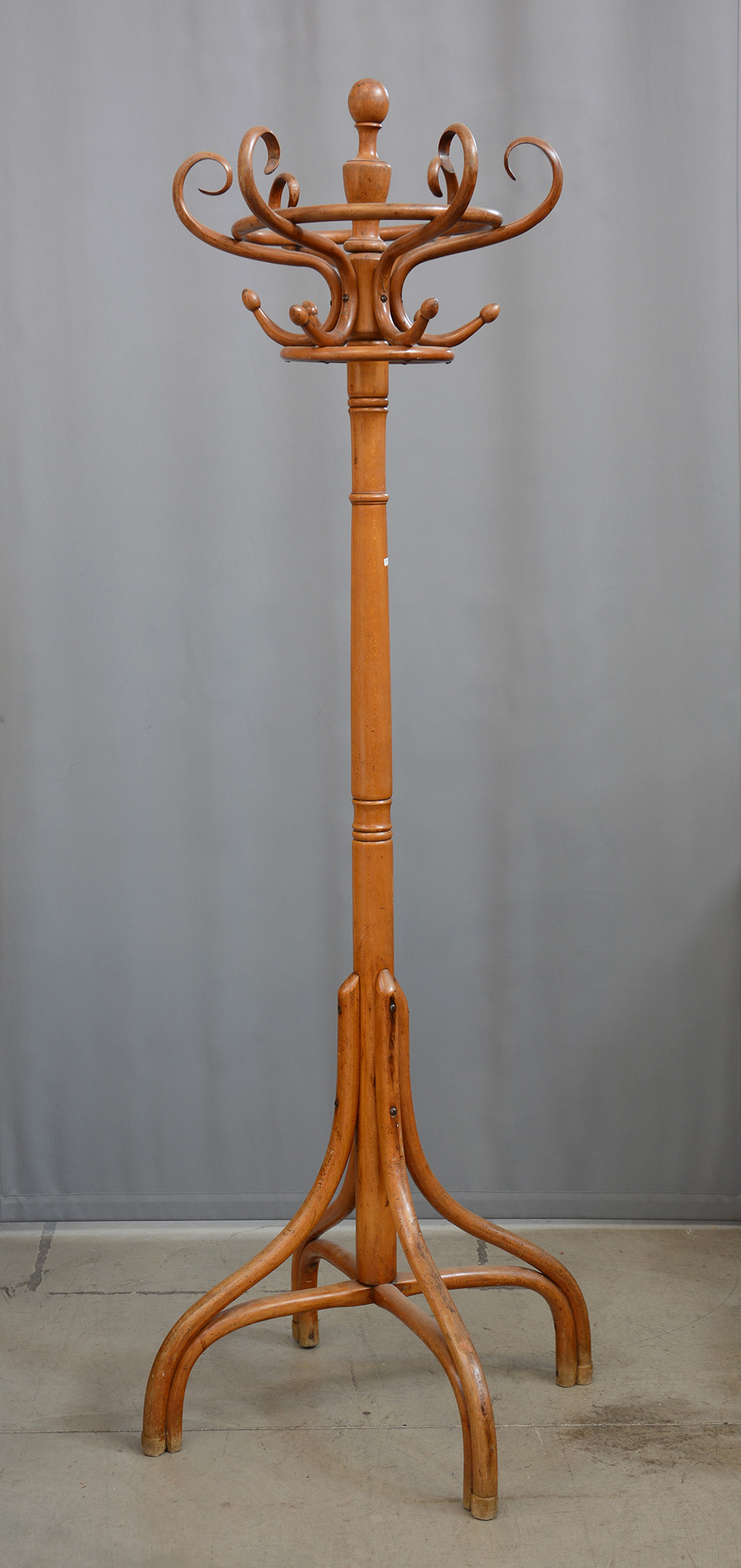 Attaccapanni da terra in faggio curvato con fusto tornito. Sec. XX (h cm 197)(difetti)