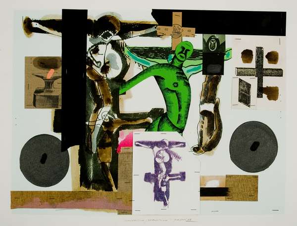 Concetto Pozzati Crocefissioni/Deposizioni – 2006 collage su cartoncino cm. 57x76 Firma in basso al centro