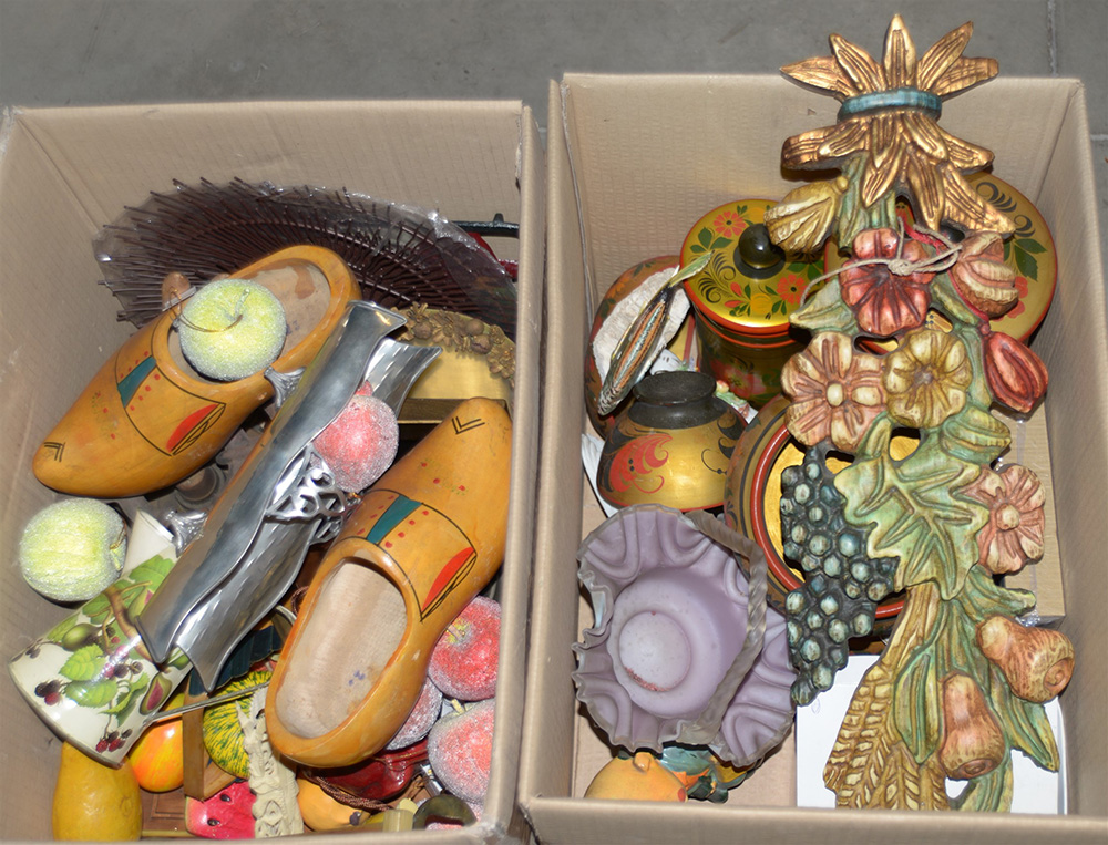 Lotto di due cartoni contenenti numerosi oggetti per uso differente (difetti)