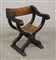 Sedia in legno tinto scuro con intagli a foglie di acànto e zampe ferine, seduta e dorsale in cuoio borchiato; ultimo quarto del secolo XIX (difetti)