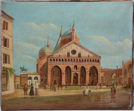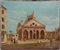 Ignoto "Scorcio di piazza con chiesa" olio su tela (cm 50x600) (difetti)