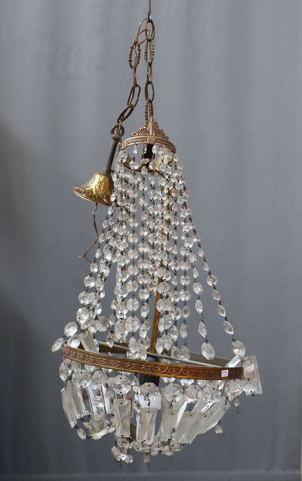 Lampadarietto a cesto in stile impero in metallo e vetro (h cm 50)(difetti)
