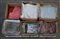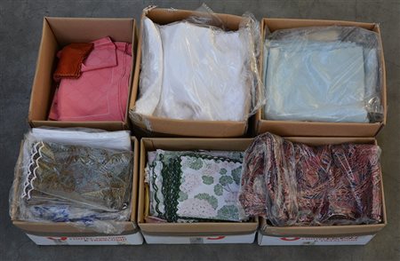 Lotto di sei scatole contenenti tovaglie e coperte varie (difetti)
