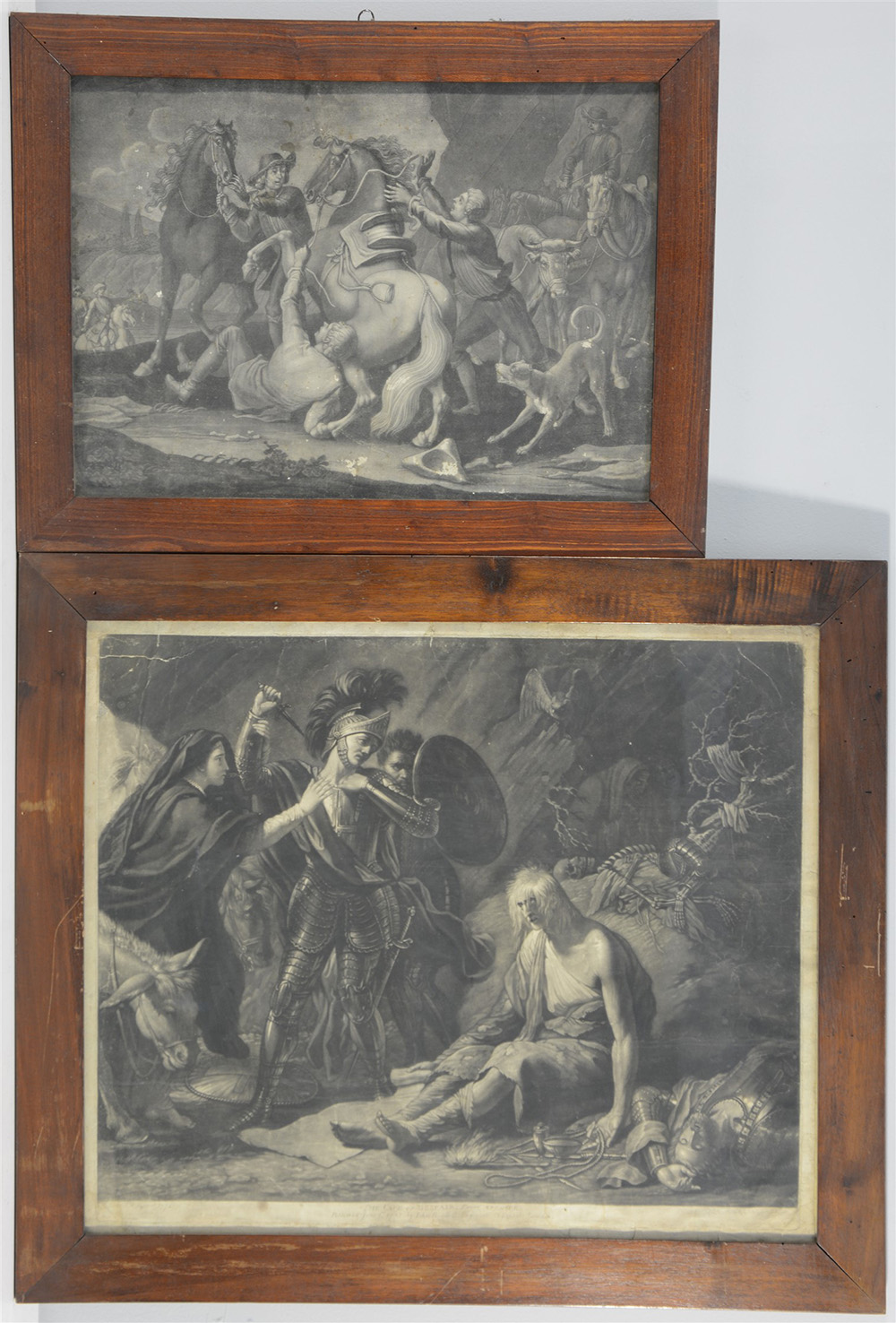 Lotto di due incisioni del secolo XVIII di soggetto, autori e misure differenti, in cornici (difetti)