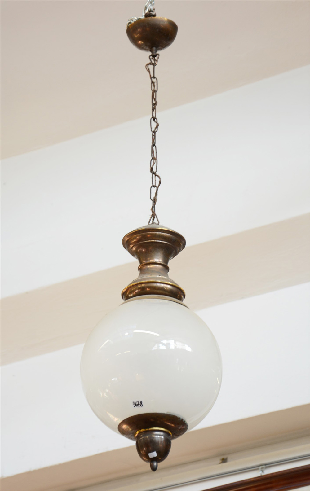 Lampadario a boccia ad una luce con struttura in metallo e diffusore in vetro satinato (difetti)