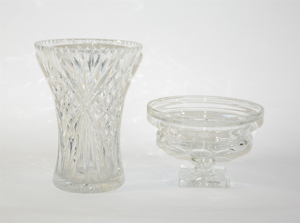 Lotto composto da un vaso ed un centrotavola in cristallo molato (difetti)