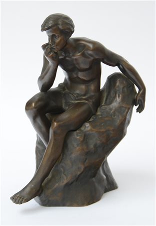Ignoto "Il pensatore" scultura in bronzo (h cm 31) firmata Monier al retro