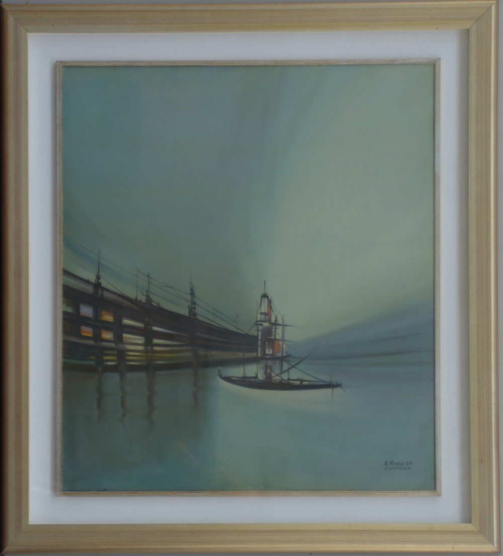 Antonio Rizzo da Contesse "Ponte" olio su tela (cm 80x70) firmato in basso a destra, in cornice (difetti)