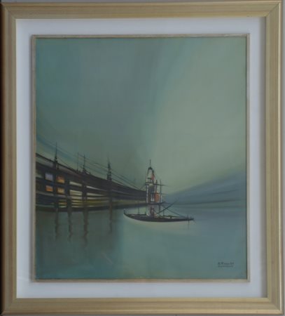 Antonio Rizzo da Contesse "Ponte" olio su tela (cm 80x70) firmato in basso a...