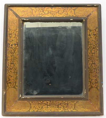 Specchiera rettangolare in legno laccato e dorato decorato a motivi vegetali (cm 88x76) (difetti)