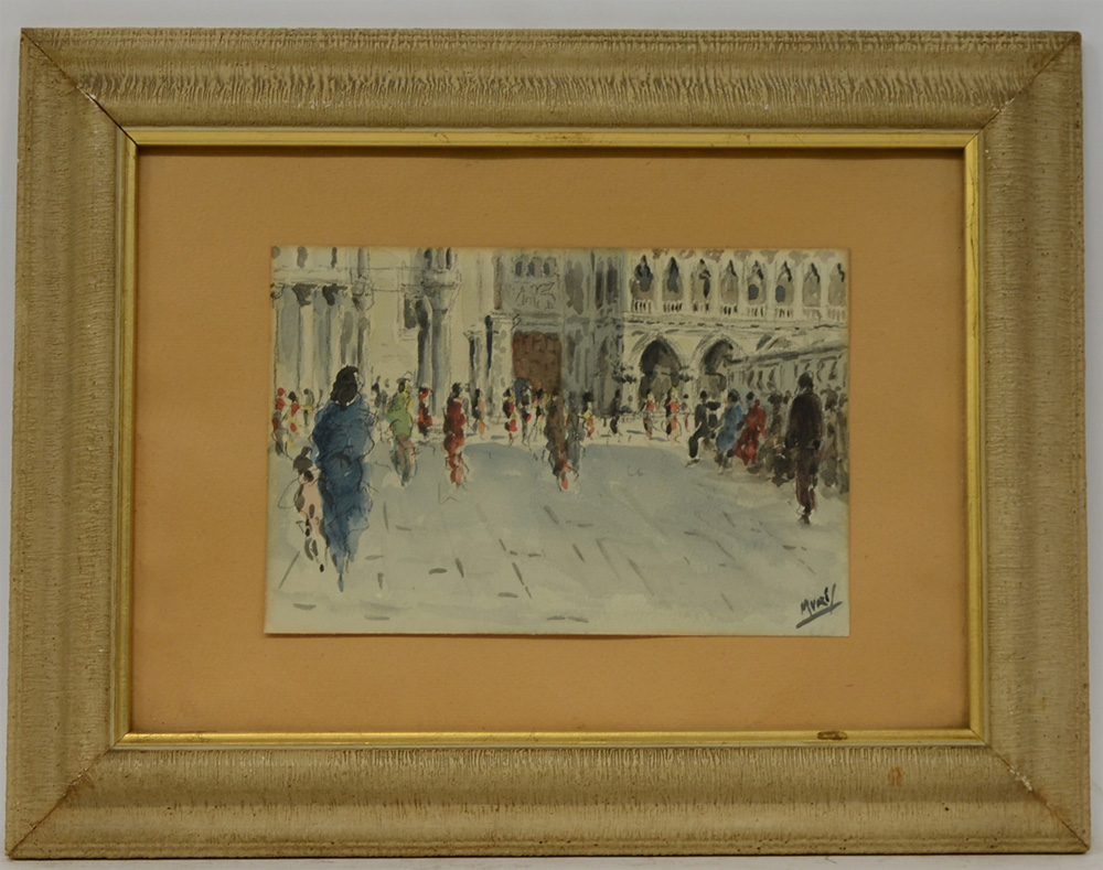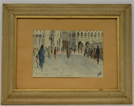 Firma indecifrata "Scorcio di Venezia" acquarello (cm 16x25) firmato in basso...