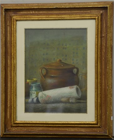 Massimo Callossi "Composizione in studio-oggetti da lavoro" olio su cartone...