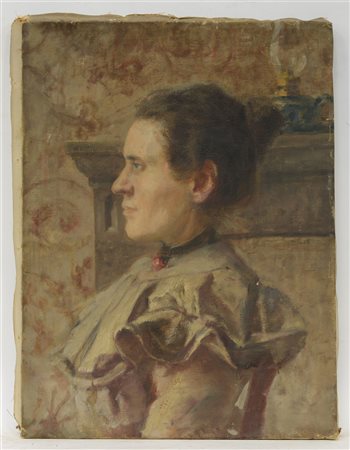 Ignoto, sec. XIX "Ritratto di Signora" olio su tela (cm 58x40)