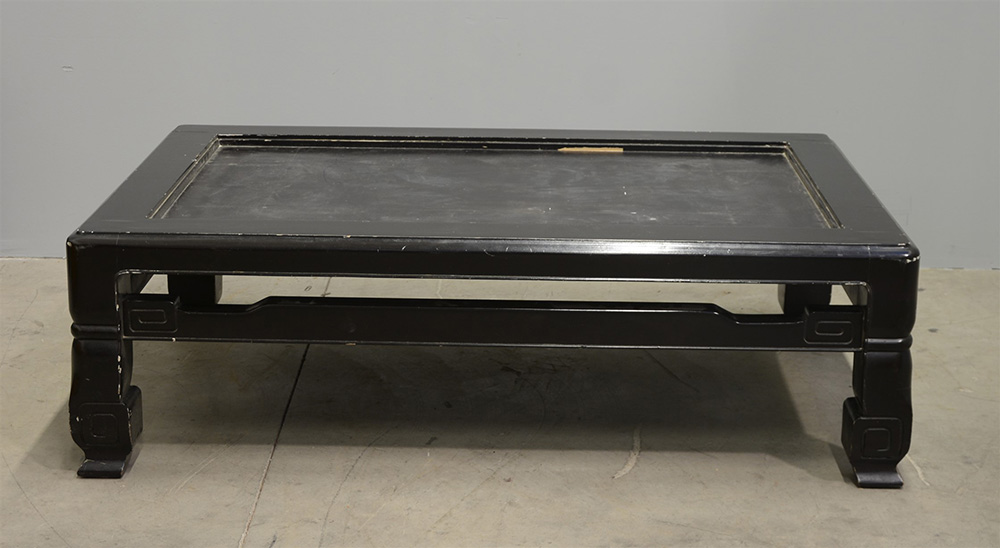 Arte orientale. Tavolino da salotto rettangolare in legno laccato nero con...