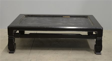 Arte orientale. Tavolino da salotto rettangolare in legno laccato nero con piedi sagomati (cm 130x40x86) (difetti)