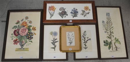 Lotto di sei stampe di diversa epoca e misure a soggetto botanico, in cornici...