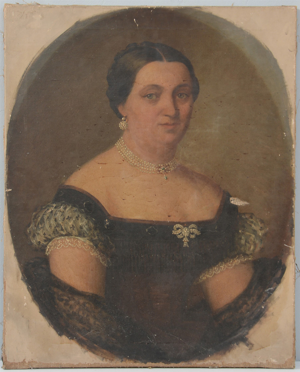 Ignoto "Ritratto di nobildonna con diadema" olio su tela (cm 69x55)(difetti)