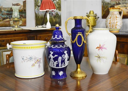 Manifatture diverse. Lotto composto da un rinfrescatoio, due vasi ed una potiche in ceramica (lievi difetti)