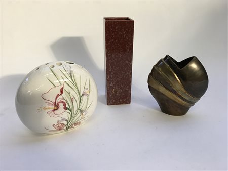 Lotto composto da due vasi ed una tulipaniera in ceramica e bronzo. Sec. XX